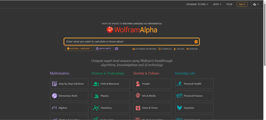 Wolfram Alpha is a powerful AI engine that can solve complex mathematical and scientific problems.