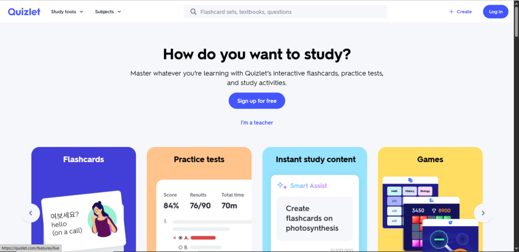 Quizlet uses AI-powered flashcards to improve memory and recall.